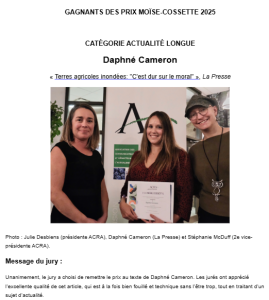 Prix Josée-de-Grandmont 2025 ACRA/ACAM